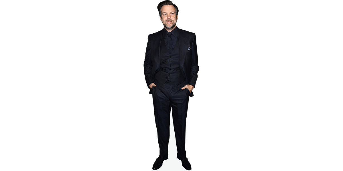 If you’re after something more compact, the mini version of Jason Sudeikis (Black Suit) Cardboard Cutout measures around 60cm tall by 21cm wide (2' x 8"). All our cutouts arrive freestanding, complete with a sturdy fold-out stand on the back — simple to display, easy to move.