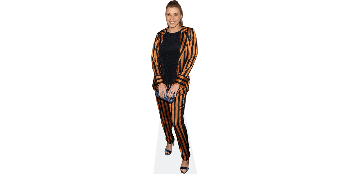 If you’re after something more compact, the mini version of Jodie Sweetin (Stripes) Cardboard Cutout measures around 60cm tall by 21cm wide (2' x 8"). All our cutouts arrive freestanding, complete with a sturdy fold-out stand on the back — simple to display, easy to move.