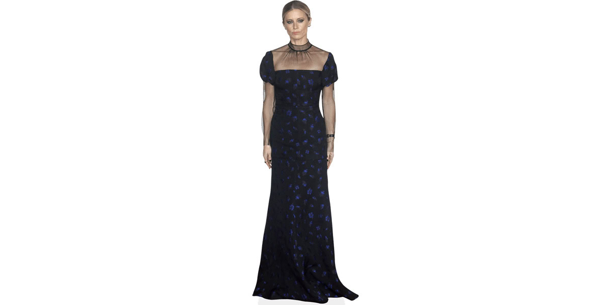 If you’re after something more compact, the mini version of Laura Bailey (Gown) Cardboard Cutout measures around 60cm tall by 21cm wide (2' x 8"). All our cutouts arrive freestanding, complete with a sturdy fold-out stand on the back — simple to display, easy to move.