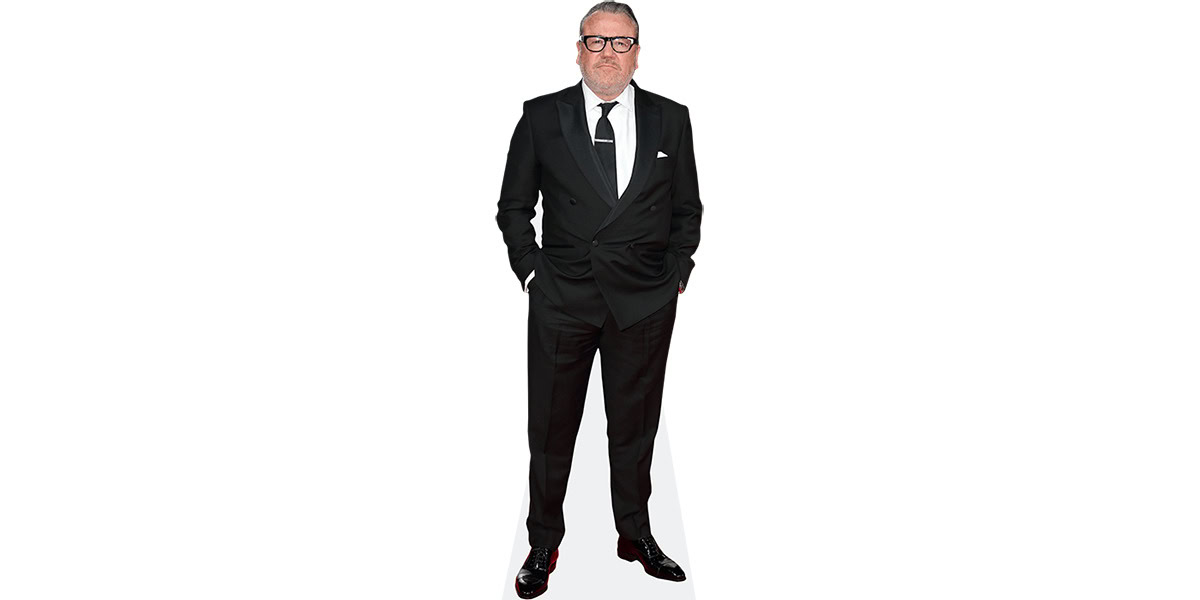 If you’re after something more compact, the mini version of Ray Winstone (Black Suit) Cardboard Cutout measures around 60cm tall by 21cm wide (2' x 8"). All our cutouts arrive freestanding, complete with a sturdy fold-out stand on the back — simple to display, easy to move.